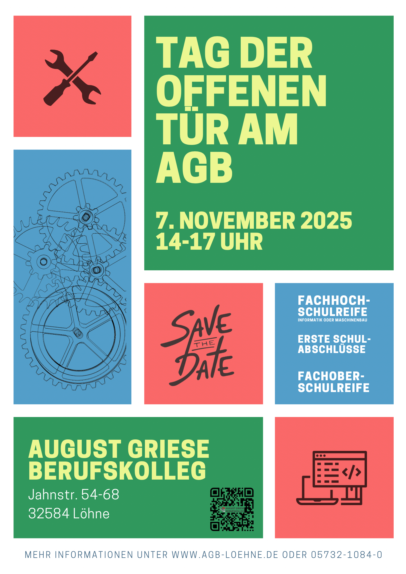 Am Freitag, dem 7. November 2025 (14 - 17 Uhr) öffnen wir nicht nur im sprichwörtlichen Sinne unsere Türen. Wer sich fragt, welche Angebote und Projekte das AGB mit seinen Schülerinnen und Schülern umsetzt oder wer gerne das Gebäude und unsere Lehrkräfte kennenlernen möchte, der ist beim Tag der offenen Tür genau richtig bei uns.